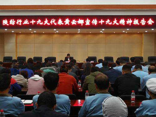 11月9日,由陜西經(jīng)濟(jì)聯(lián)合會(huì)、陜西省思想政治工作研究會(huì)、陜西省財(cái)貿(mào)金融輕工工會(huì)聯(lián)合主辦,陜紡政研會(huì)承辦的十九大代表五環(huán)集團(tuán)黃云娜十九大精神宣傳報(bào)告會(huì)在咸陽(yáng)紡織集團(tuán)舉行。咸紡集團(tuán)子公司,各分廠、部門(mén)負(fù)責(zé)人、黨員代表以及受邀參會(huì)的新興紡織工業(yè)園、方圓集團(tuán)、華潤(rùn)印染、西北一棉、西北二棉、陜棉八廠等單位代表共計(jì)300余人聆聽(tīng)報(bào)告會(huì)。