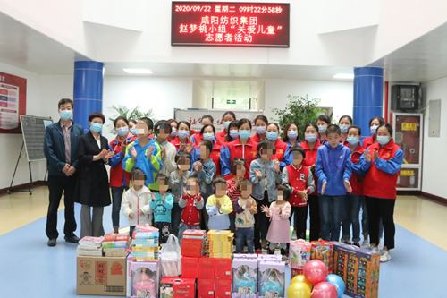 9月22日國慶、中秋前夕,“咸陽紡織集團(tuán)趙夢桃小組志愿者服務(wù)隊(duì)”一行在集團(tuán)公司黨委委員、工會(huì)主席王艷梅的帶領(lǐng)下,一大早,乘車前往咸陽市社會(huì)福利院兒童福利中心開展“關(guān)愛兒童”志愿服務(wù)活動(dòng)。
