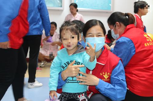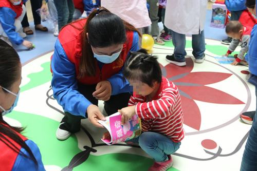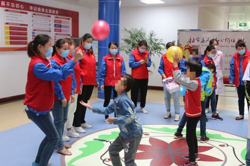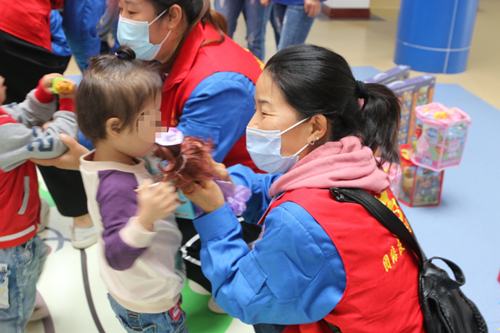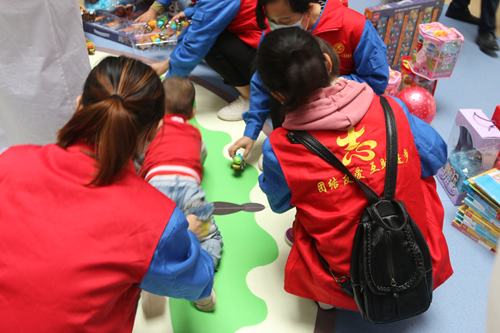 志愿者們或抱起可愛的孩子,和他們說話,或圍成半圓形,和他們對(duì)拍皮球、或蹲坐在地上,給他們講故事,接過他們手中的芭比娃娃,教他們梳理頭發(fā)......,孩子們歡快幸福的模樣,不斷觸動(dòng)著志愿者的心靈。