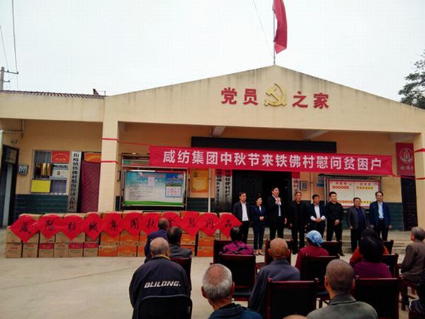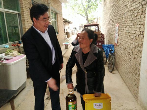 金秋送爽,丹桂飄香。為深入推進(jìn)精準(zhǔn)扶貧、精準(zhǔn)脫貧,弘揚(yáng)“扶危濟(jì)困”的傳統(tǒng)美德,9月28日,集團(tuán)公司黨委書記、董事長(zhǎng)范振華、黨委委員、工會(huì)主席王艷梅一行來到集團(tuán)公司駐村扶貧點(diǎn)——乾縣陽峪鎮(zhèn)鐵佛村,為村民們送去了中秋慰問品。