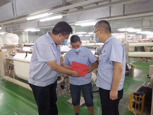 為扎實推進黨史學(xué)習(xí)教育和“我為群眾辦實事”活動,同時向今年子女考入高校的職工家庭表示祝賀,8月20日,集團公司黨委書記、董事長范振華帶領(lǐng)黨政工班子成員及各分廠、職能部門負責人等來到今年子女新考入高校的職工崗位上,向他們送上了賀金。 發(fā)放現(xiàn)場,集團公司領(lǐng)導(dǎo)關(guān)切地詢問職工子女考入院校、專業(yè)、開學(xué)等情況,并感謝他們多年來為公司的辛勤付出,為企業(yè)做出的貢獻,生產(chǎn)現(xiàn)場、辦公室內(nèi)一片喜慶的氛圍。