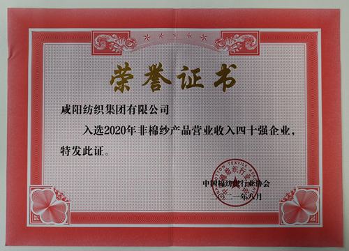 (入選2020年非棉紗產(chǎn)品營業(yè)收入四十強(qiáng)企業(yè))