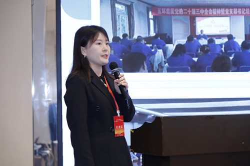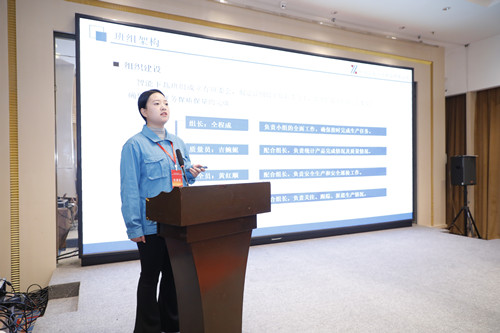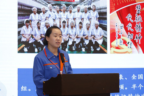 交流會(huì)上,咸陽(yáng)紡織集團(tuán)有限公司一分廠(chǎng)趙夢(mèng)桃小組 組長(zhǎng)王丹以《以“八過(guò)硬”固本強(qiáng)基 趙夢(mèng)桃小組花開(kāi)新時(shí)代》為主題,就五年來(lái)如何傳承弘揚(yáng)“夢(mèng)桃精神”進(jìn)行了總結(jié)匯報(bào)。