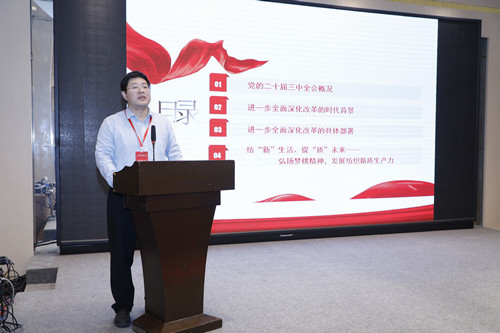 會(huì)上,大會(huì)特別邀請(qǐng)西安工程大學(xué)馬克思主義學(xué)院郭松副院長(zhǎng)圍繞“黨的二十屆三中全會(huì)精神”和“傳承弘揚(yáng)‘夢(mèng)桃精神’”,為大家講授了一堂生動(dòng)又深刻的黨課。