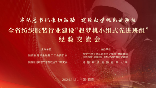 為深入貫徹落實(shí)習(xí)近平總書(shū)記對(duì)趙夢(mèng)桃小組的親切勉勵(lì),進(jìn)一步推動(dòng)紡織行業(yè)“科技、綠色、時(shí)尚”高質(zhì)量發(fā)展,11月12日,由陜西省財(cái)貿(mào)金融輕工工會(huì)、陜西省紡織職工思想政治工作研究會(huì)主辦,西安工程大學(xué)馬克思主義學(xué)院“夢(mèng)桃精神 代代相傳”全國(guó)紡織思想政治教育研究基地、咸陽(yáng)紡織集團(tuán)有限公司承辦的陜西省紡織服裝行業(yè)建設(shè)“趙夢(mèng)桃小組式先進(jìn)班組”經(jīng)驗(yàn)交流會(huì)在西安成功舉辦。