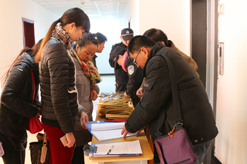 圖為工作人員為職工派發(fā)鑰匙
