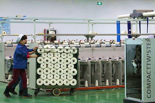 圖為細(xì)紗工序一角