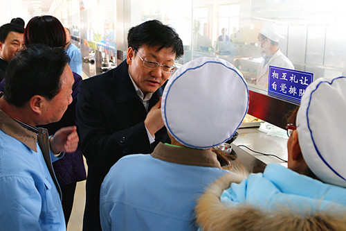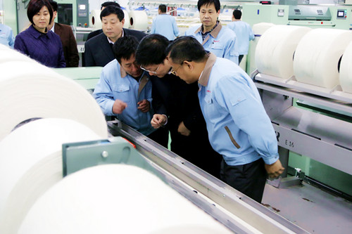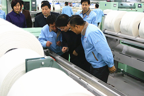 3月2日,副市長(zhǎng)劉印生帶領(lǐng)市級(jí)相關(guān)部門負(fù)責(zé)人深入咸陽紡織集團(tuán)調(diào)研。 副市長(zhǎng)劉印生一行先后深入咸陽紡織集團(tuán)一分廠、職工餐飲服務(wù)中心和職工宿舍,通過實(shí)地查看和與職工交流的形式,對(duì)紡織集團(tuán)的建設(shè)情況及職工生活情況進(jìn)行詳細(xì)了解。座談會(huì)上,劉副市長(zhǎng)聽取了集團(tuán)負(fù)責(zé)人相關(guān)工作情況的匯報(bào),并對(duì)集團(tuán)建設(shè)中遇到的困難和問題進(jìn)行協(xié)調(diào)。 劉副市長(zhǎng)強(qiáng)調(diào),要牢牢把握今年工作的總體要求,以積極主動(dòng)的工作態(tài)度,科學(xué)安排設(shè)備購置及企業(yè)搬遷等各項(xiàng)工作,確保集團(tuán)建設(shè)工作順利推進(jìn)。
