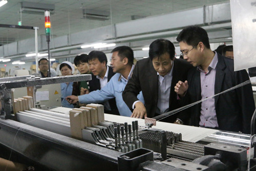 10月13日下午,國(guó)務(wù)院發(fā)展研究中心王微一行8人來(lái)集團(tuán)公司調(diào)研。 在集團(tuán)公司一分廠,王微一行詳細(xì)了解了每一道工序的工作狀況和設(shè)備運(yùn)轉(zhuǎn)情況,并在夢(mèng)桃之家,與夢(mèng)桃小組的組長(zhǎng)進(jìn)行了親切的交談,希望她們進(jìn)一步發(fā)揚(yáng)夢(mèng)桃精神,為紡織行業(yè)作出表率。