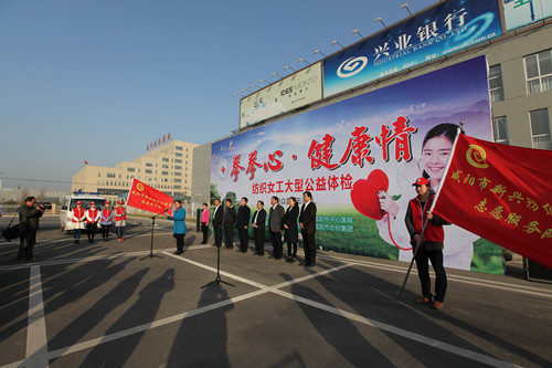 3月3日,由市總工會、市婦聯(lián)、市中心醫(yī)院、市紡織工業(yè)園管委會、集團公司五家單位聯(lián)合主辦的“拳拳心 健康情”紡織女工大型公益體檢活動在集團公司一分廠舉行了啟動儀式,免費為2000名紡織女工進行體檢,讓她們感受黨和政府、社會各界的溫暖和關(guān)懷。